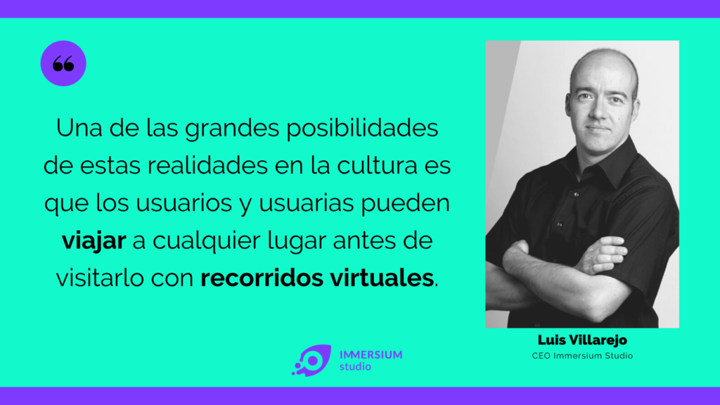 Villarejo asegura que una de las grandes posibilidades de estas realidades en la cultura es que los usuarios y usuarias pueden viajar a cualquier lugar antes de visitarlo con recorridos virtuales, creando una mayor vinculación de dicho espacio desde la comodidad de casa.